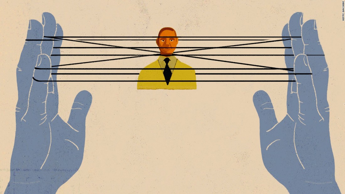 Notes: people get manipulated by the media as little toys in between hands playing with strings
